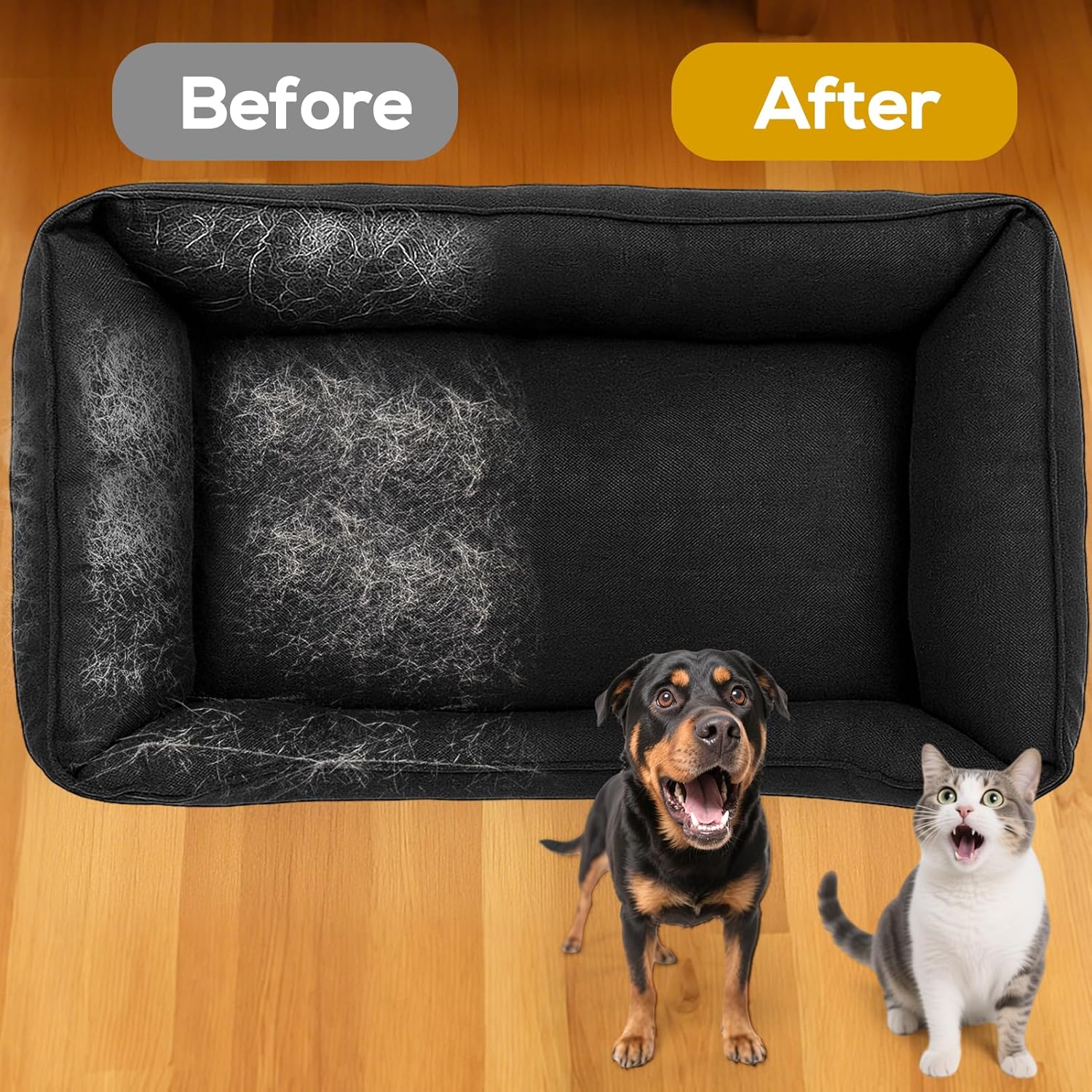 Use it directly on your pets to gently remove shedding fur or clean your couches, clothes, carpets, and bedding. It reaches into furniture cracks and tight spaces where traditional tools fail.